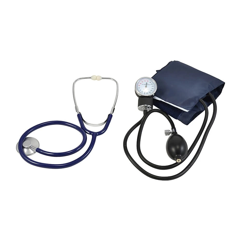 - With aneroid, spyhg and stethoscope