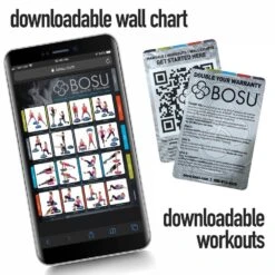 Includes BOSU Balance Trainer and dual action hand pump. Owners manual, exercises and wall charts all now downloadable via a QR code that comes with your Bosu.