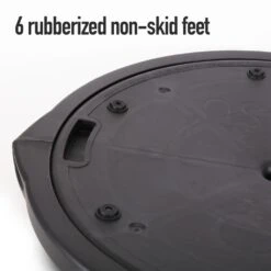 BOSU™ is an acronym for “both sides up”. The BOSU® Balance Trainer can be used with the platform side either up or down for different types of balance challenge. The solid platform is 25 inches in diameter and the dome should be inflated until it is firm. Two recessed handles on the bottom of and towards the sides on the platform make it easy to turn over or carry.