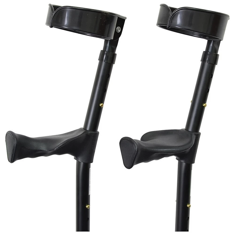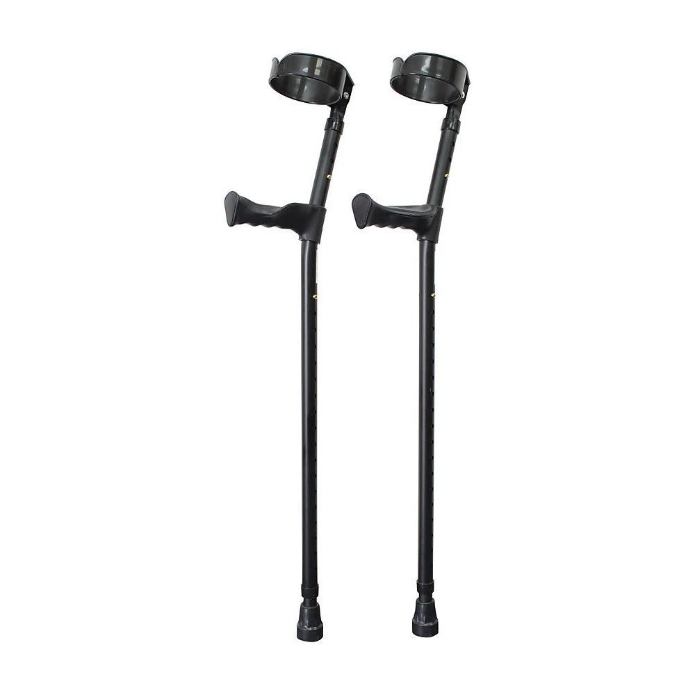 These Double Adjustable Elbow Crutches feature contoured moulded handles that evenly distribute pressure across the palm of the hand, contributing to the users ease of operation and comfort.