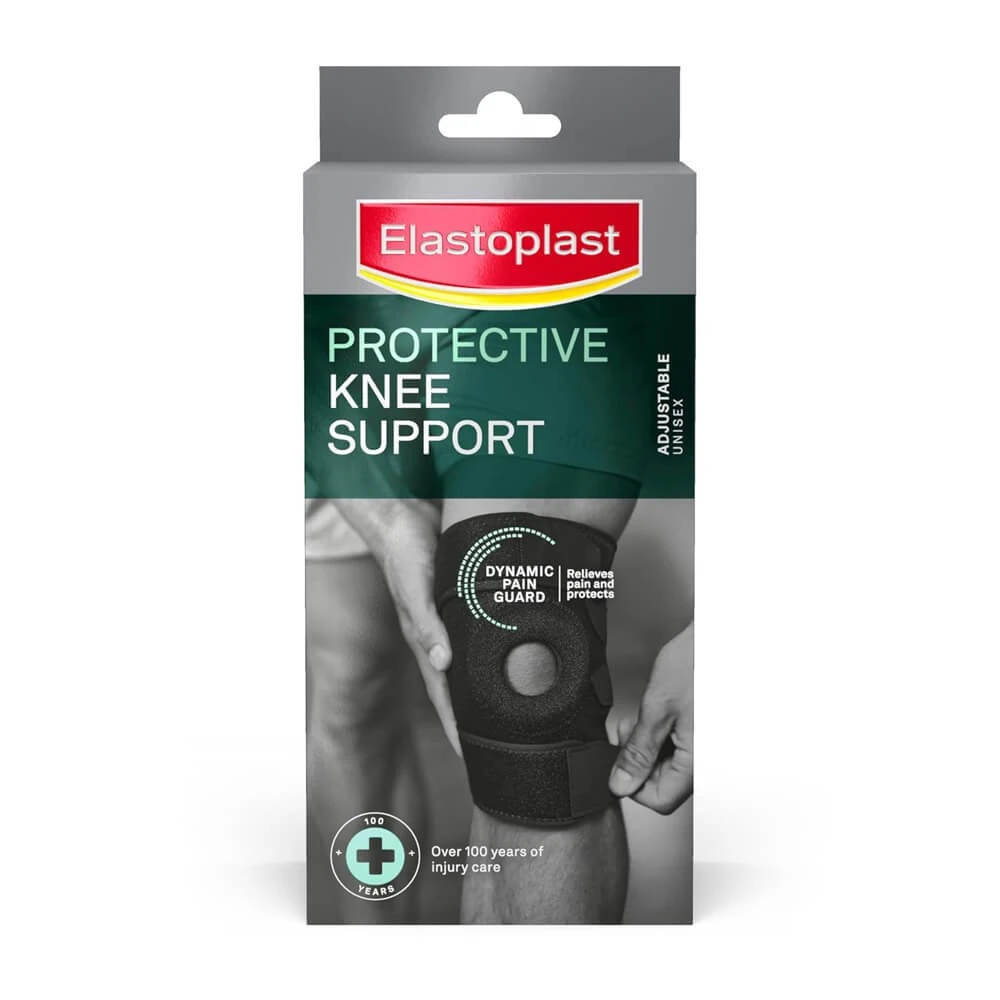 The Elastoplast Protective Knee Support improves healing and stability in knees that are weak or injured. By providing compression and warmth, it reduces and prevents join effusion and pain in the knee joints and tendons.