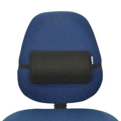 - A portable back support that fits most flat-backed chairs