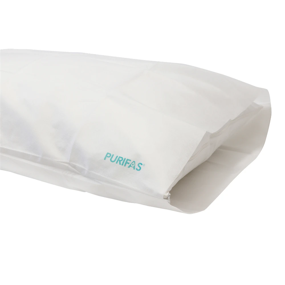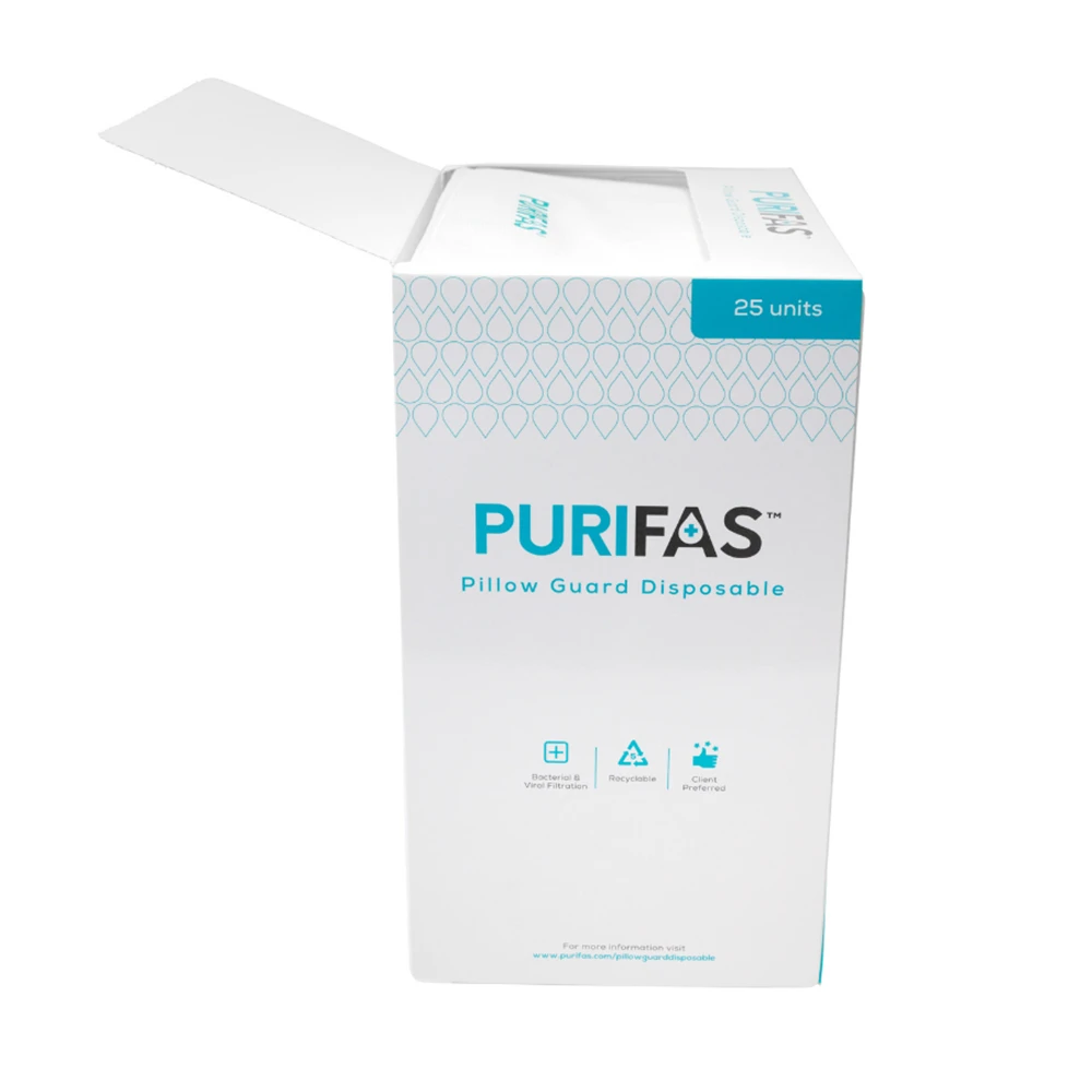 The recyclable Purifas® PillowGuard is a medical grade pillow protector that can be easily and efficiently replaced (and recycled) between clients.