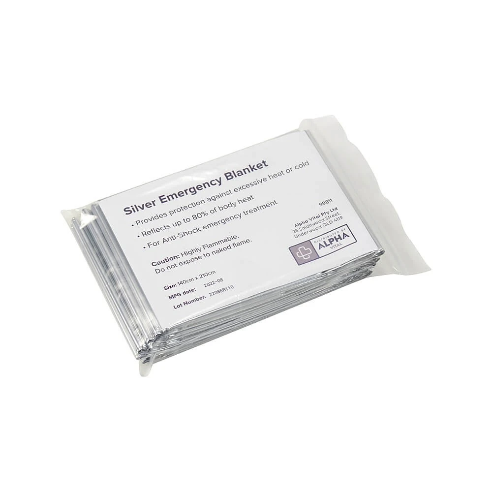 The Silver Space Emergency Blanket is a versatile addition to any first aid kit, tailored for various environments including workplaces, off-road adventures, and bushwalking excursions. Crafted from standard foil material, this emergency blanket efficiently reflects up to 80% of body heat back to the casualty, aiding in the retention of warmth and prevention of heat loss. Primarily designed to treat shock or hypothermia, it serves as a crucial tool in maintaining body temperature during emergencies. Commonly known as space blankets, thermal blankets, or weather blankets, these aluminum film blankets are prized for their multipurpose utility and can be used for a range of scenarios. Whether utilized for first aid purposes or by outdoor enthusiasts during backpacking and camping trips, the Silver Space Emergency Blanket offers reliable warmth and protection in critical situations.Â