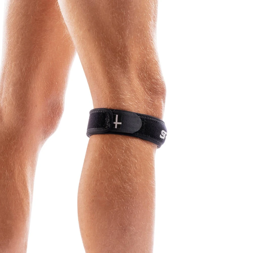 This model is a simple, versatile, and universal knee strap that is made from SRX material with a top surface made from loop fabric. The design makes it ideal as an entry strap for kneecap tendon problems. The hook and loop adjustment makes it versatile and easy to apply. The pad is placed over the kneecap tendon providing a light support. The compression is adjusted by the circumference tension of the strap. The knee strap can be used for local inflammations, mild jumpers knee problems as well as mild Osgood–Schlatter disease.